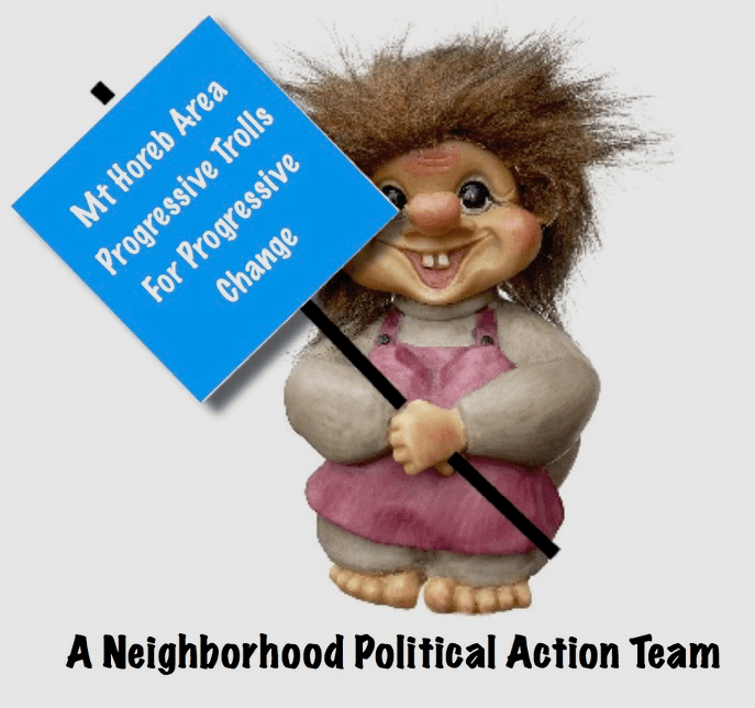 The Mount Horeb Progressive Trolls, a Wisconsin neighborhood team of volunteers, supporting politically progressive values, initiatives, and candidates in Mount Horeb since 2017